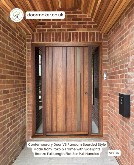Contemporary Vertical Boarded Door and Frame with Fully Glazed Sidelights