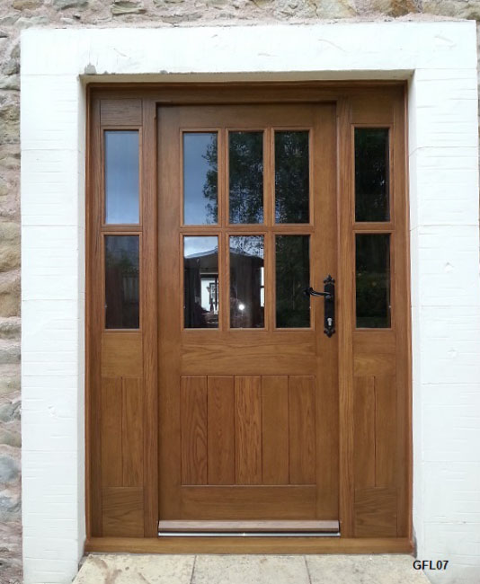 Oak Framed Ledged Door with Half Glazed Side Panels